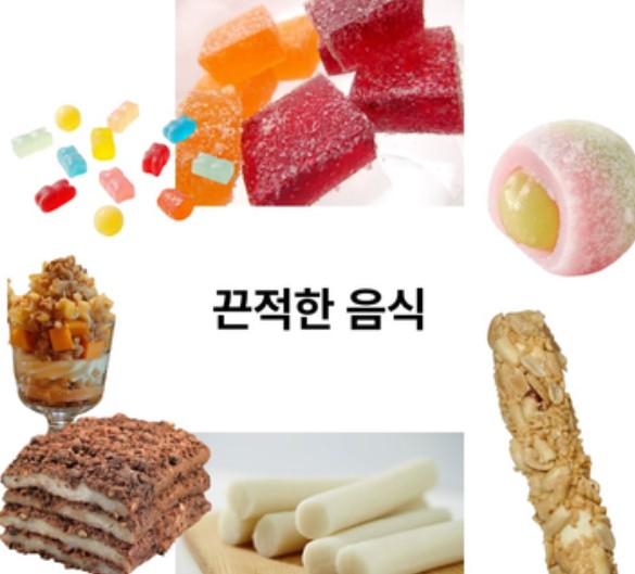 끈적한 음식 : 엿, 캐러멜, 떡, 젤리류