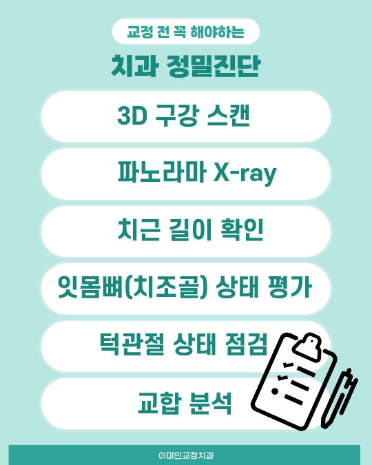 1. 셀프교정기의 가장 큰 문제는 ‘정밀 진단 없이 사용’된다는 점 치아교정은 단순히 치아를 앞으로 밀거나 안쪽으로 당기는 과정이 아닙니다. 치과에서는 교정 전 반드시 3D 구강 스캔 파노라마 X-ray 치근 길이 확인 교합 분석 턱관절 상태 점검 잇몸뼈(치조골) 상태 평가 를 진행합니다. 겉으로 보기엔 앞니가 조금 삐뚤어 보이지만 실제로는 턱뼈 위치 문제일 수 있고, 치아 뿌리가 짧아 강한 힘을 가하면 위험한 경우도 있습니다. 셀프교정기는 이러한 진단 과정 없이 일률적인 압력을 가합니다. 그 결과 치근 흡수, 잇몸 퇴축, 교합 악화가 발생할 가능성이 있습니다. 2. “앞니 조금만 움직이면 되잖아요”가 위험한 이유 셀프교정기를 고민하는 분들의 대부분은 앞니만 살짝 교정하고 싶어 합니다. 하지만 치아는 독립적으로 존재하지 않습니다. 위·아래 치아는 서로 맞물리며 턱관절과 함께 기능합니다. 앞니만 임의로 이동시키면 어금니 교합이 어긋날 수 있고 턱관절 통증이 발생할 수 있습니다. 셀프교정기 사용 후 재교정 치료를 받는 사례도 실제로 보고되고 있습니다. 3. 셀프교정기와 투명교정의 차이 겉으로 보면 셀프교정기와 인비절라인 같은 투명교정 장치는 비슷해 보일 수 있습니다. 그러나 구조는 전혀 다릅니다. 인비절라인 같은 투명교정은 개인의 치열과 교합 상태를 분석해 이동 경로를 단계별로 설계합니다. 반면 셀프교정기는 강도 단계만 나뉘어 있을 뿐 개인별 골격 구조나 치근 상태를 고려하지 않습니다. 힘의 방향과 강도를 조절하지 못하면 치아가 의도치 않은 방향으로 이동할 수 있습니다.